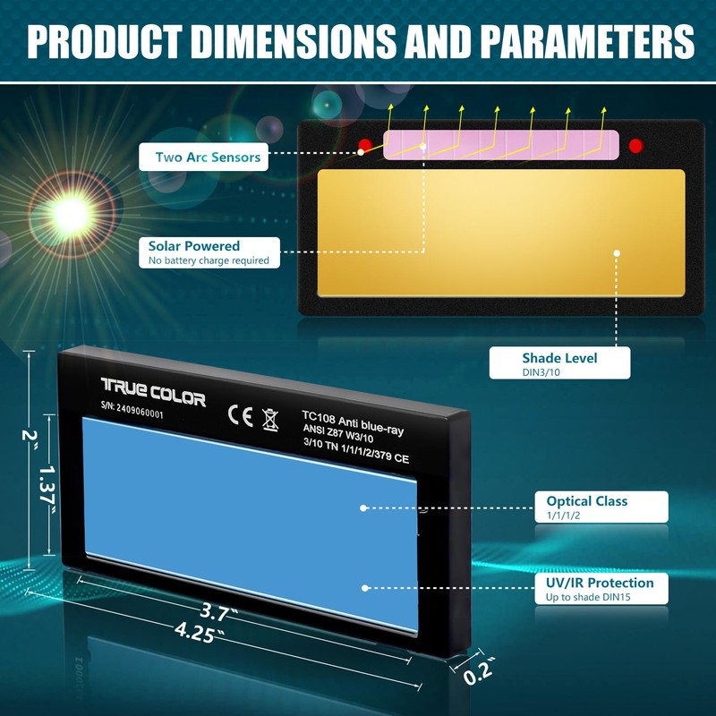 - Reliable And Durable: It is powered by solar energy, does not require frequent battery replacement, when there is no light, the solar cell through the circuit to disconnect the lithium battery, making it suitable for long-term storage to provide a seamless and reliable solution for everyday welders.Note ! ! ! If you do not use this product during regular time, please put the lens in the sun to charge before use.