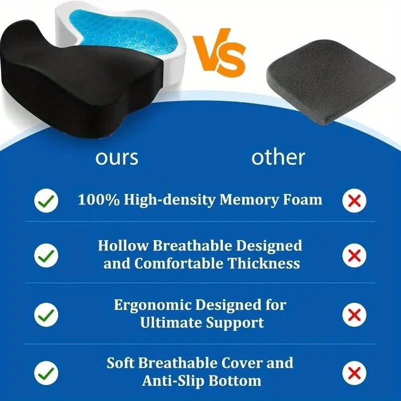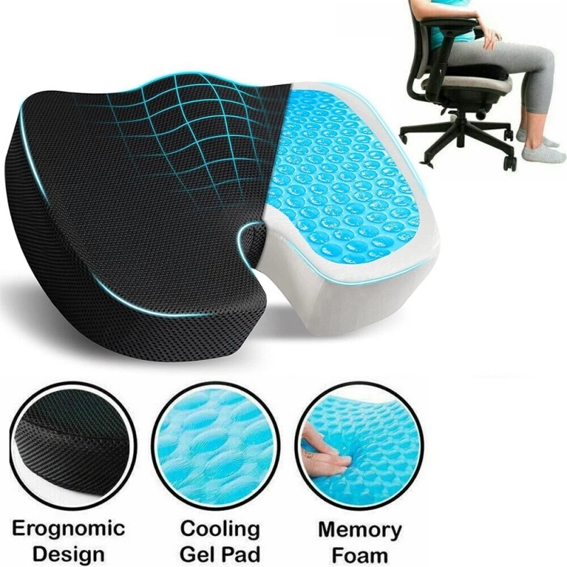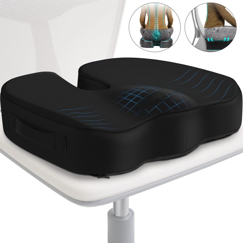 2×Memory Foam Seat Cushion Office Chair Car Seat Pad Coccyx Tailbone Pain Relief
