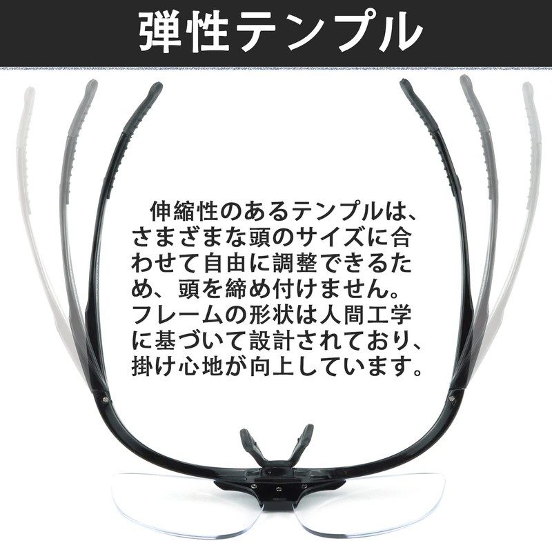 拡大鏡 跳ね上げ ルーペリムレスメガネ メガネ型ルーペ ブルーライトカット スポーツグラスフレーム 拡大 眼鏡 遠近両用 かくだい鏡メガネ 拡大鏡ルーペ 拡大メガネ ルーペ めがね 男女兼用 眼鏡型ルーペ 細かい作業 (ブラック, 3.0倍率)