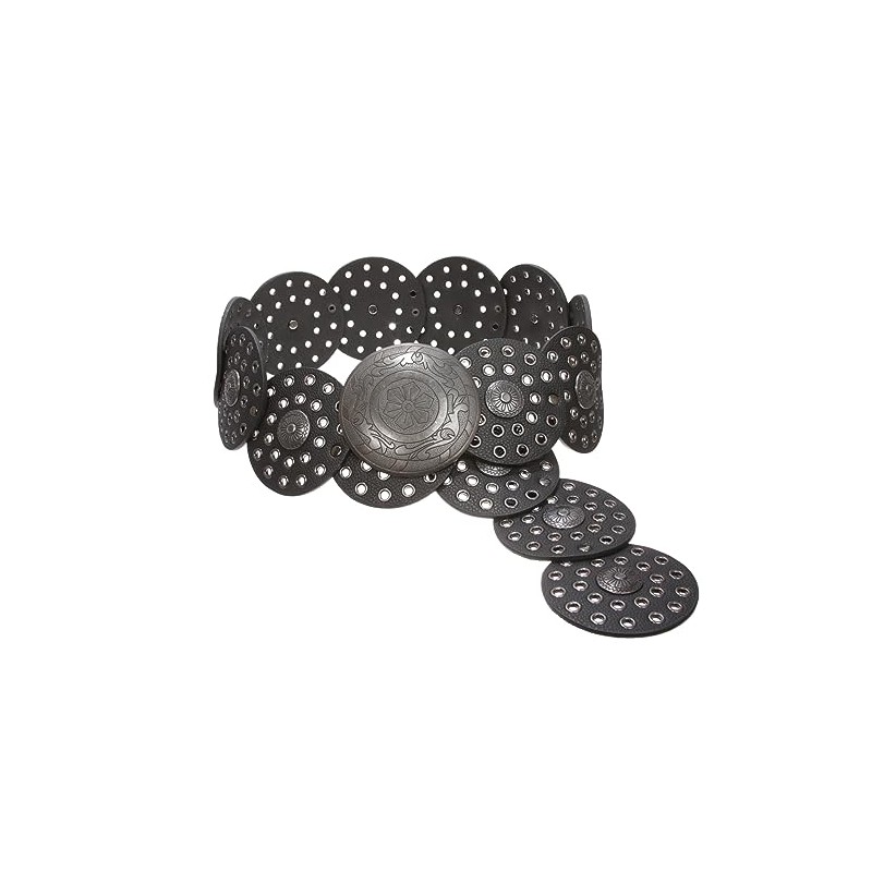 3 1/2" (90 mm) Wide Ladies Wide Boho Disc Concho Leather Belt, Black | S - 39 END-TO-END