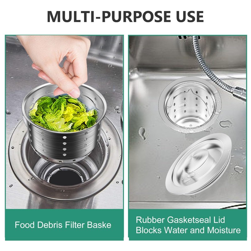 - Sink strainer includes: removable deep Kitchen Sink Drain Basket, Sink Stopper and Sealing Cover.