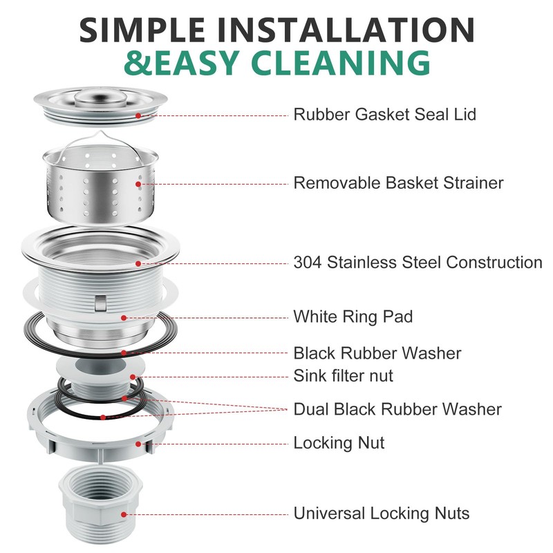 - Easy Installation: The kitchen sink strainer includes all the parts needed for installation, no additional tools or professional plumbing are required to install.