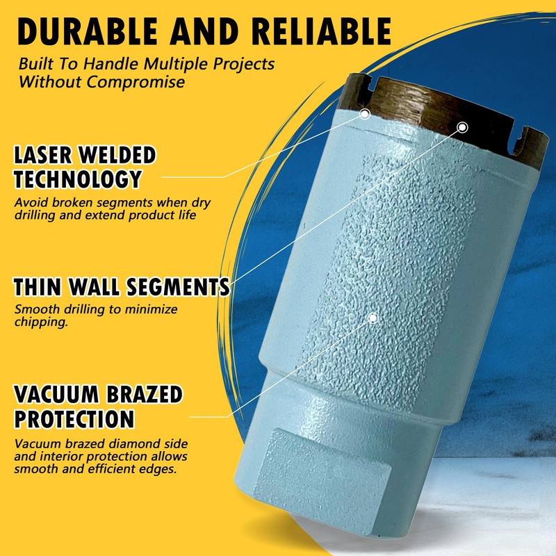 - DRILL DEPTH/SEGMENT HEIGHT - 1.6" drilling depth with 8mm segment height, use wet or dry.