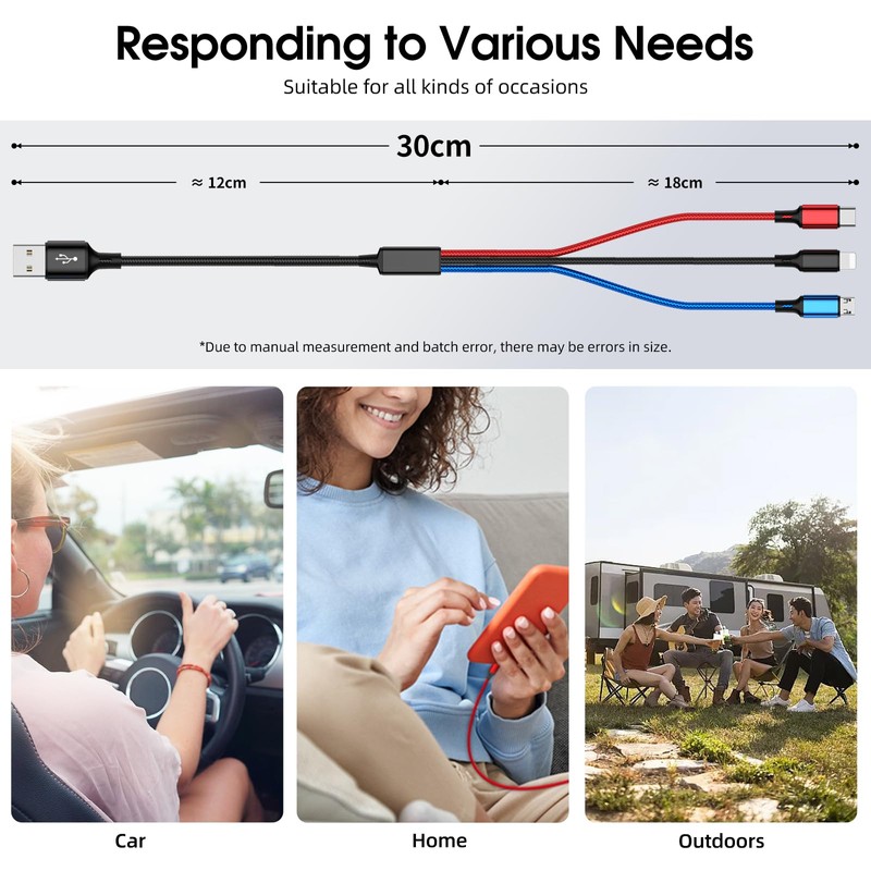 - 【完璧な長さ】3本パックの短い充電コード 1フィートで携帯電話を簡単に充電でき、ケーブルの長さが長くなりません。 持ち運びにも非常に便利です。 マルチ充電ケーブルを1本持参し、お客様のニーズを満たします。