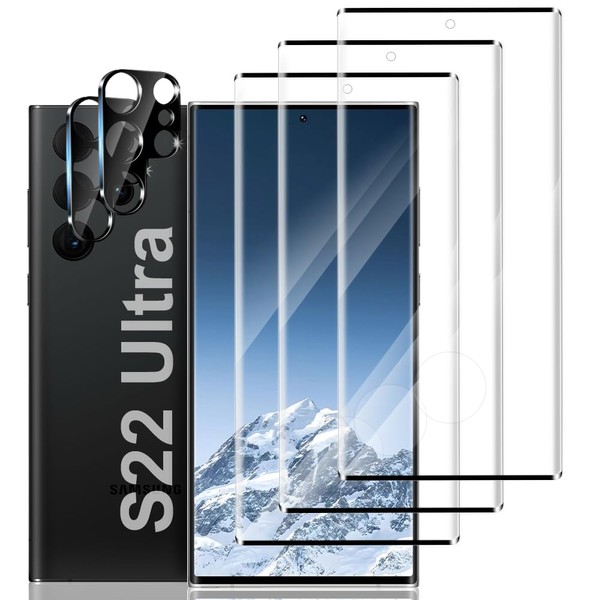3+2 Pack Galaxy S22 Ultra Screen Protector and Camera Lens Protector, Ultrasonic Fingerprint 3D Curved 9H Tempered Glass Screen Protector,HD Clear Scratch Resistant For Galaxy S22 Ultra (6.8Inch)