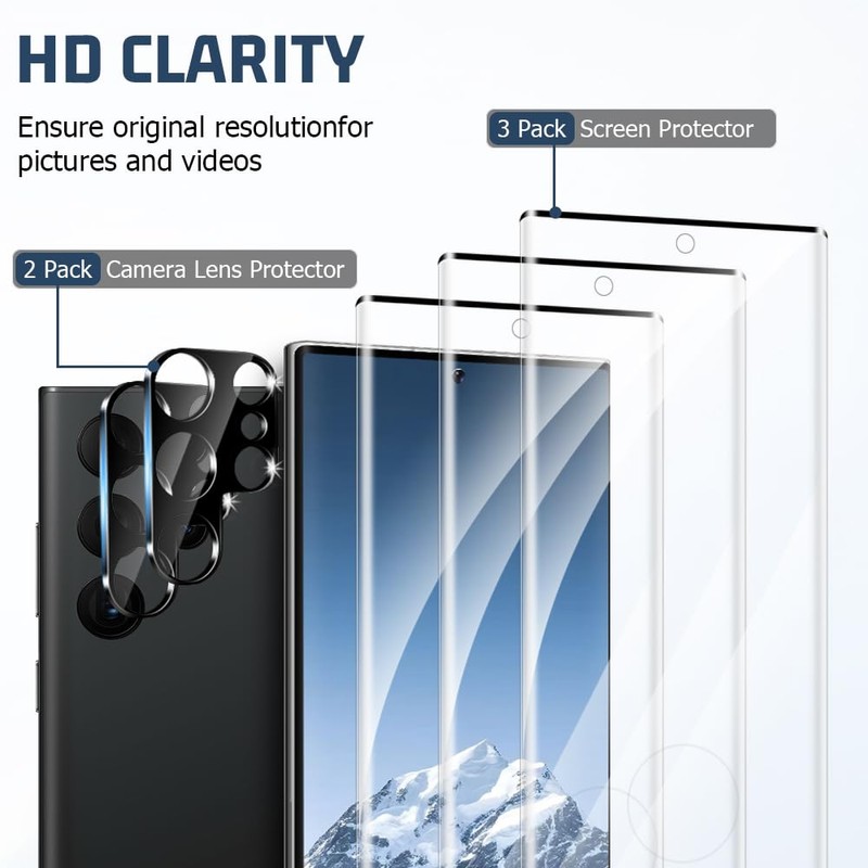 3+2 Pack Galaxy S22 Ultra Screen Protector and Camera Lens Protector, Ultraso...