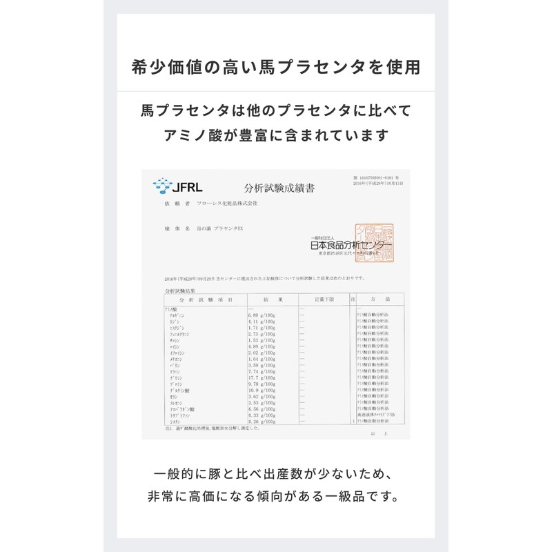 - [ 馬 プラセンタ ] 希少価値が高く、 アミノ酸 を豊富に含む 馬プラセンタ を使用。