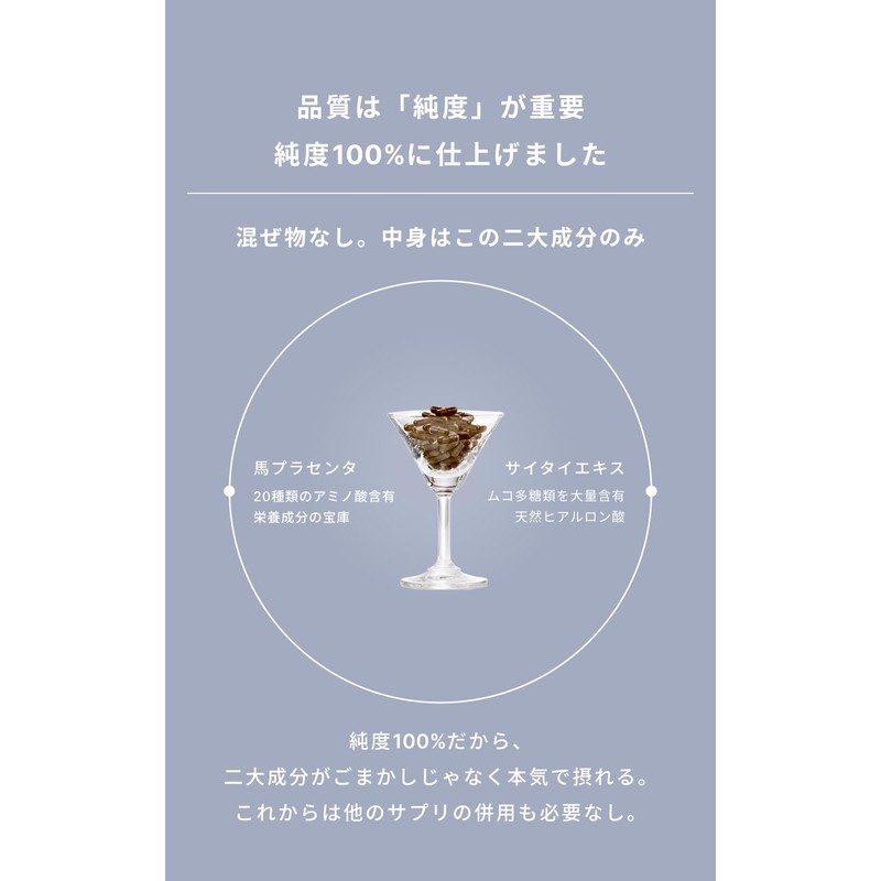 - [ 純度 100% ] 中身は 馬プラセンタ サイタイエキス のみ。 混ぜ物一切なしの 濃縮 純度 100% 仕様。
