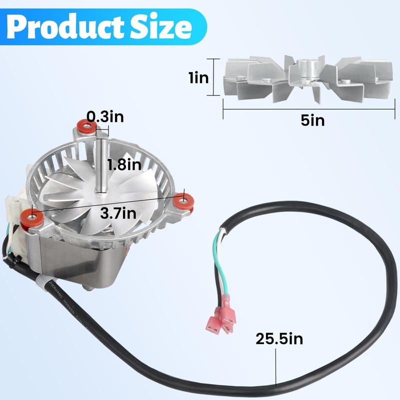 3-21-08639 Combustion Blower with 3-20-502221 Fan Blade 5" Double Paddle Impeller Replacement for Harman Pellet Stove Part P68 P43 P61 P38 XXV Exhaust Fan for Heatilator Eco Choice