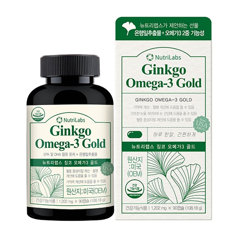 뉴트리랩스 징코 오메가3 골드 3개월분 은행잎추출물