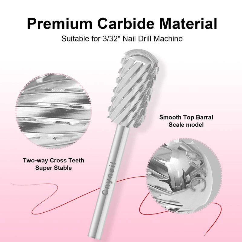 3/32" Large Barrel Smooth Round Top Tungsten Carbide Nail Drill Bit Safety Bit for Gel & Acrylic Removal, 2-Way Rotating Efile Tip, Salon Electric File Accessory (3XC Grit, Silver)