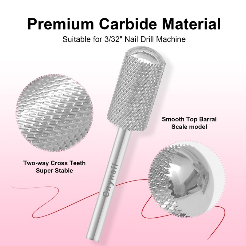 3/32" Large Barrel Smooth Round Top Tungsten Carbide Nail Drill Bit Safety Bit for Gel & Acrylic Removal, 2-Way Rotating Efile Tip, Salon Electric File Accessory (F Grit, Silver)