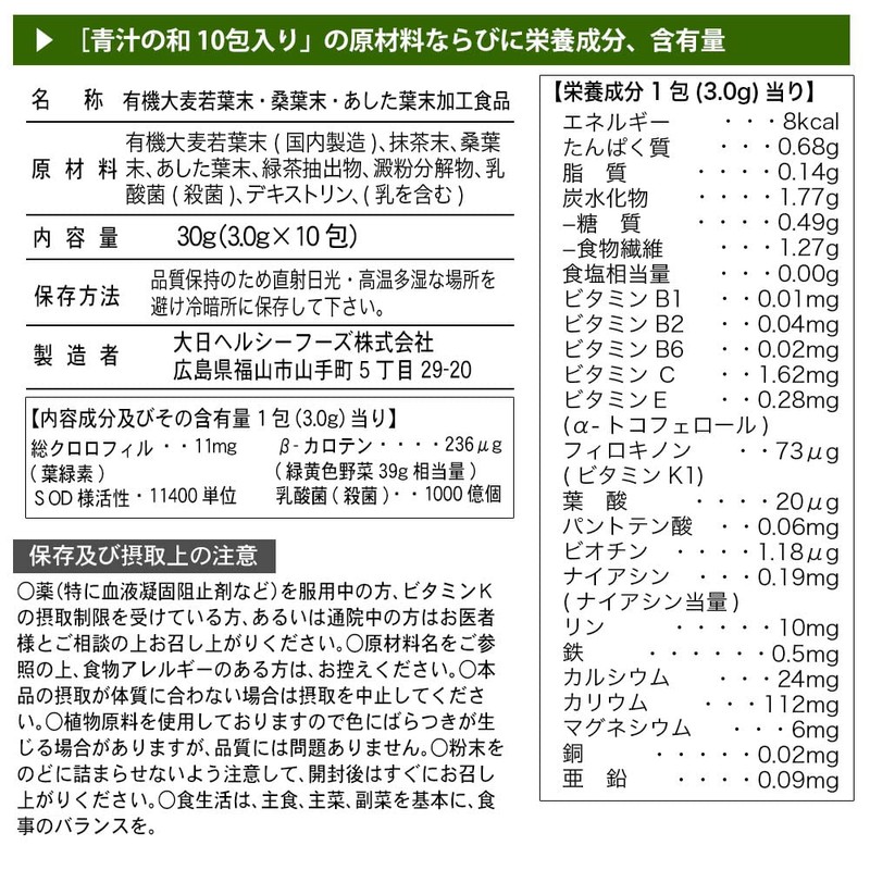 - ✅ 内容量: 内容量:青汁の和 3袋セット 1袋あたり30g:3g×10包入り ※日本製・栄養補助食品