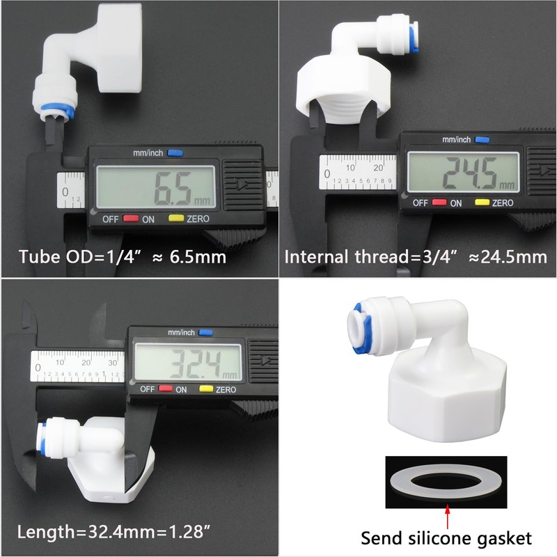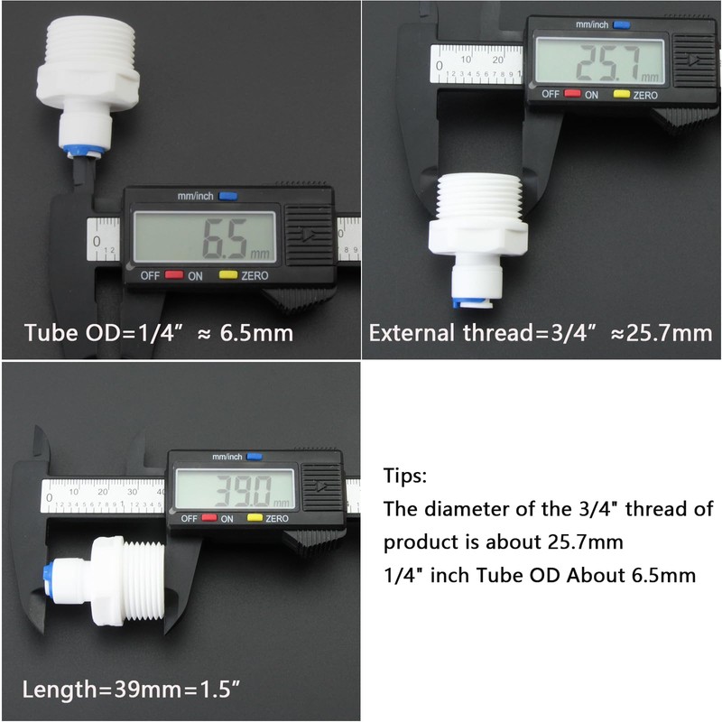 - Specification: 1/4 inch quick connector, suitable for water filtration system pipelines of approximately 6.5mm. 3/4 inch thread, approximately 25mm, suitable for reverse osmosis water systems and also for any other joint using 3/4 inch NPT/GGHT/NHT external threads.