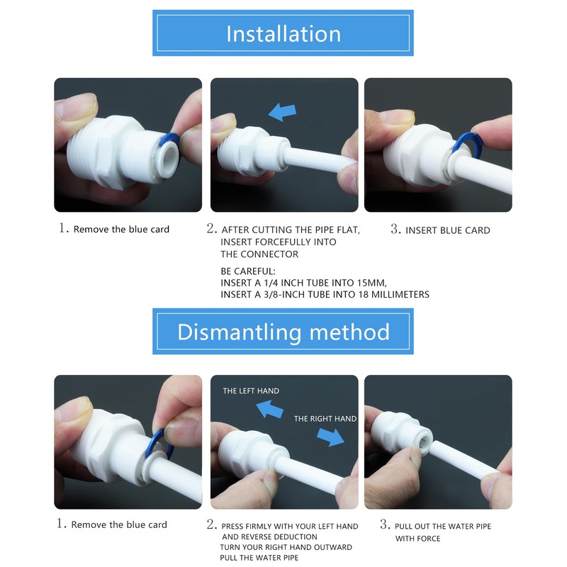 - Easy to install without tools, simply insert the tube into the bottom to quickly and easily connect or disconnect. Please note: When installing the pipe, it is necessary to first remove the blue buckle.
