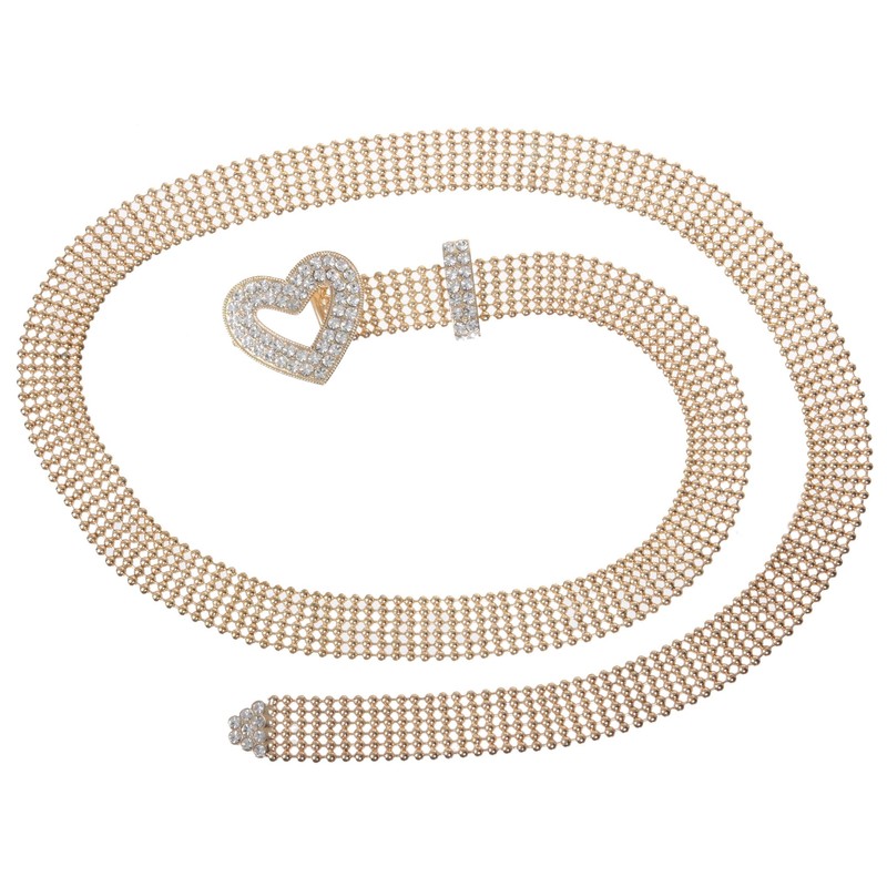 3/4" Rhinestone Open Heart Metal Ball Chain Belt, gold w/clear stone | one size up to 36"