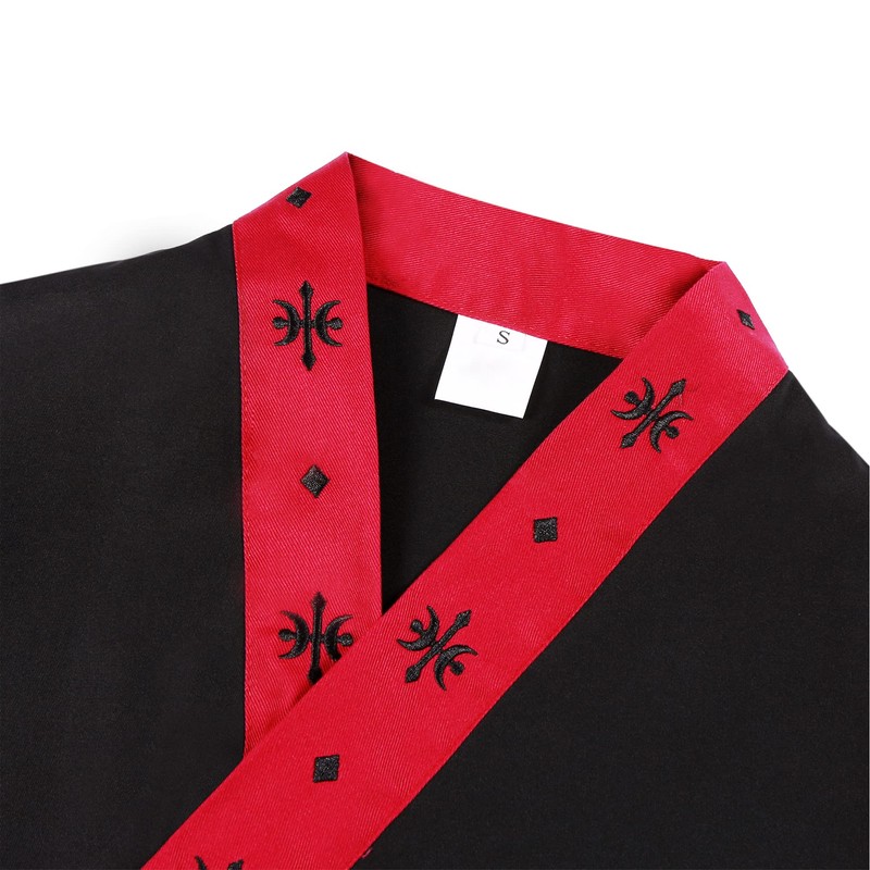 - Design: This sushi chef coat is based on solid color, with special retro pattern on the edge, kimono collar and side strap design. cross-over styling with right side tie, inner ties secure to left side. Drawstring closure can blet under the right which makes you looking extremely professional. This chef kimono is applicable to four seasons.