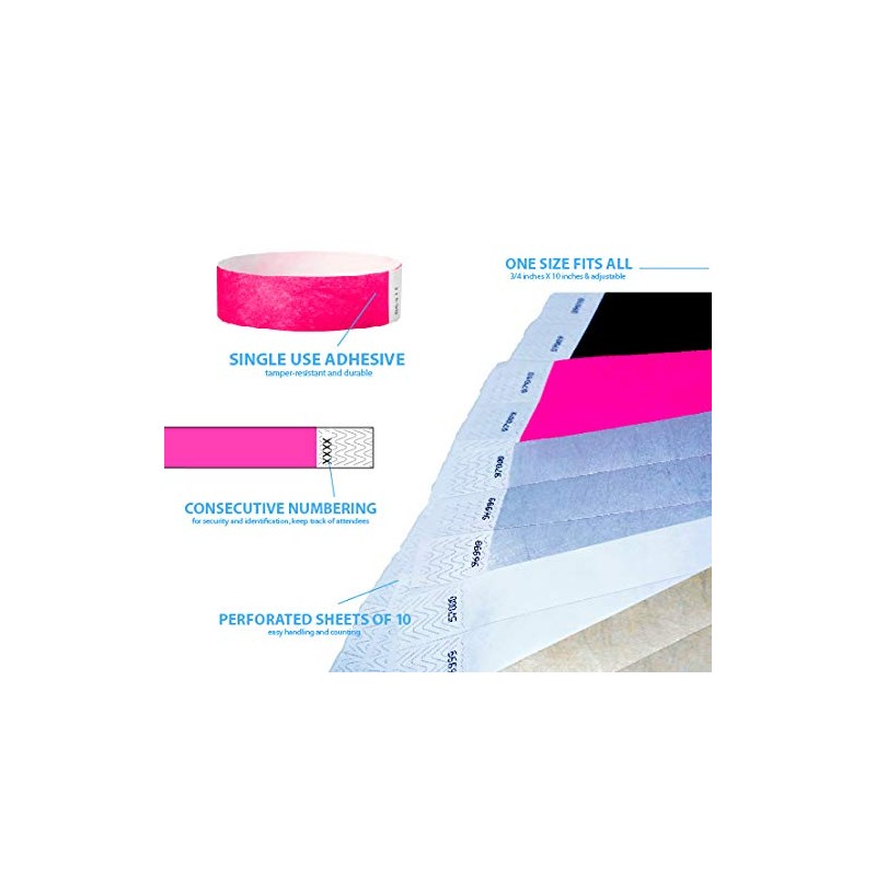 • ⭐ SECURITY - Each Tyvek Wristband uses a waterproof, tamper-resistant adhesive closure that prevents transfer of the wristband. If a visitor attempts to transfer the wristband, the adhesive will tear in a way that prevents re-use.