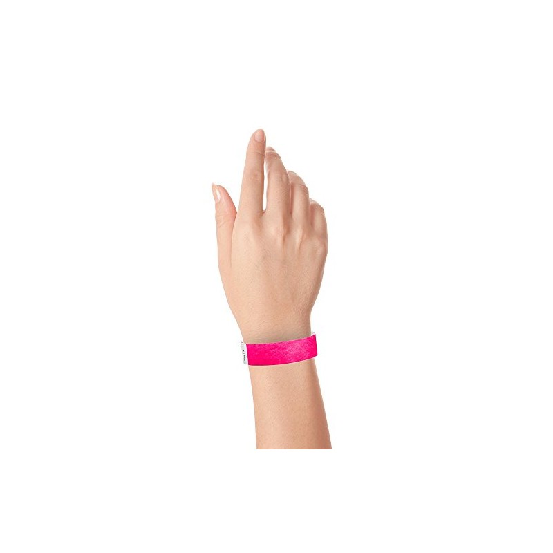 3/4" Tyvek Solid Color Wristbands - Pack of 100 - Secure Paper-Like Admission Band for Events by myZone Printing (Neon Pink)