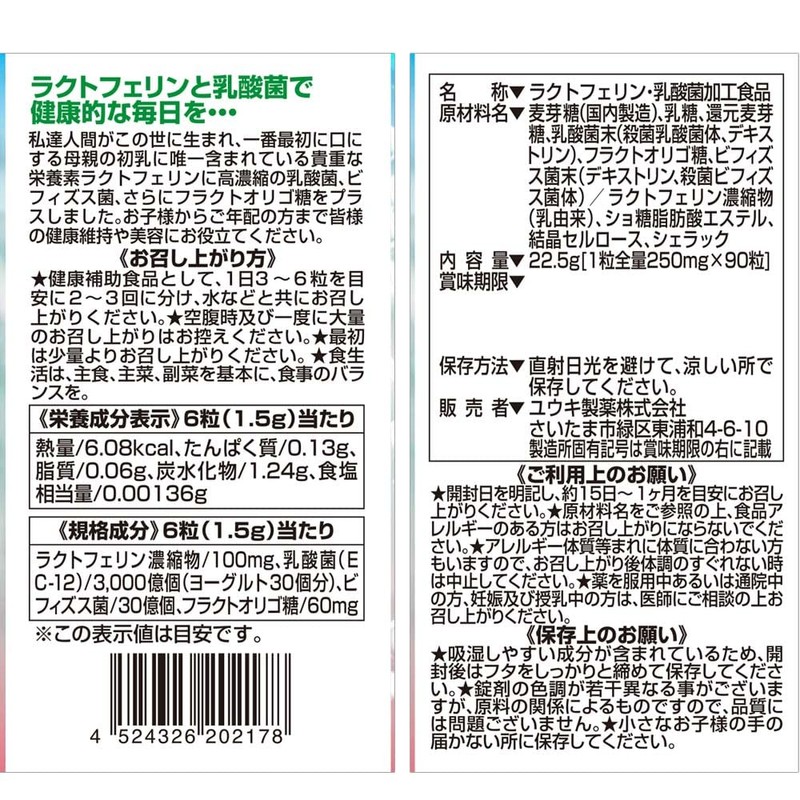 ユウキ製薬 ラクトフェリン 乳酸菌 3個 45-90日分 EC-12 ビフィズス菌 オリゴ糖