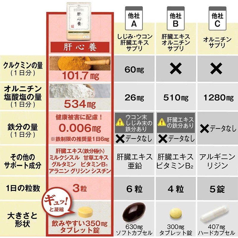 • ✅【⭕クルクミン】肝心養では、鉄分の多いウコンそのものではなく、その中の重要成分クルクミンを多く含んだ抽出エキスを配合しています。
