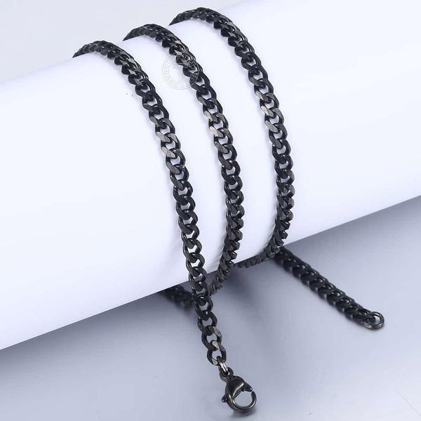 3/5/7/9/11mm Stainless Steel Silver Color Cuban Curb Chain Necklace Choker 16-30" for Men Women Daily Jewelry Birthday Anniversary Gift necklace - Chain Width: 3mm Black, Chain Length: 18 inches