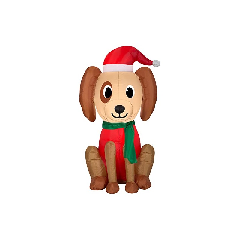3.5' Gemmy Airblown Inflatable Christmas Sitting Dog w/Santa Hat