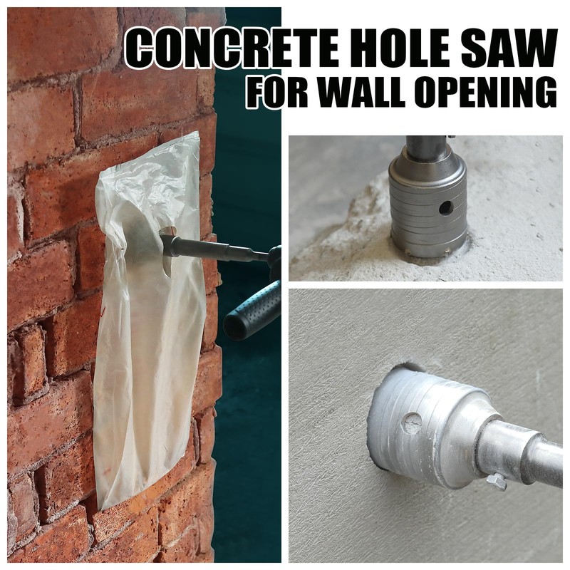 - Package includes: 3.5 inch / 90mm Concrete Hole Saw + 220mm SDS Plus Shank Connecting Rod +2 center drill bits + 2 screws +3 plastic dust bags