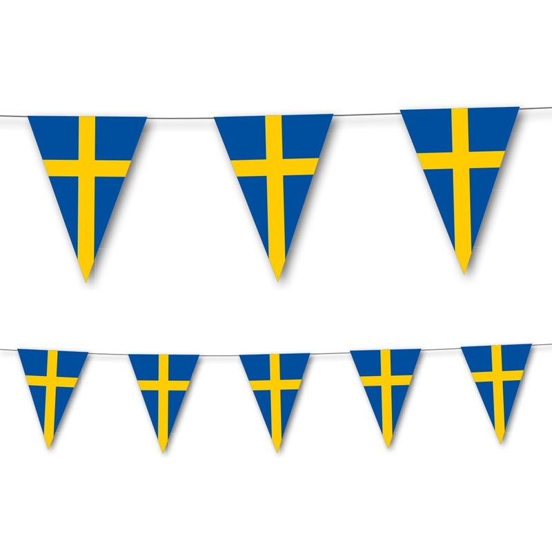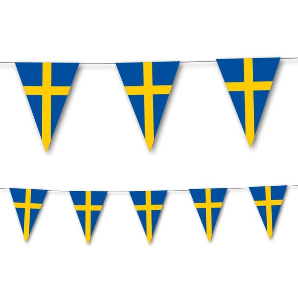 - 3.5 m Sweden bunting with 10 flags and fastening cord for a great country party