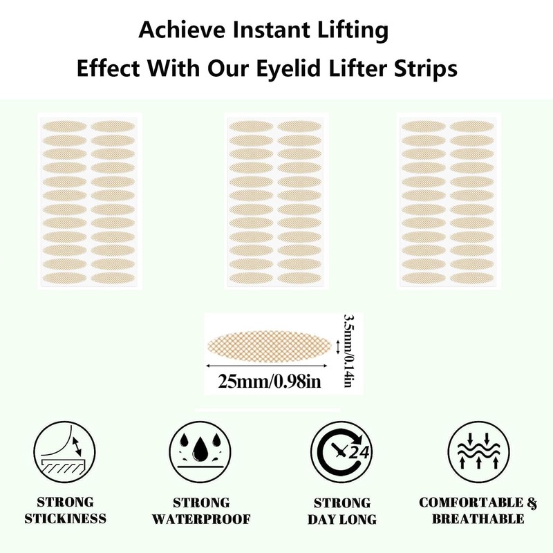 - 【High-Quality Material】Our eyelid tape is made of high quality medical adhesive fiber, which is breathable, waterproof and long-lasting, suitable for all skin tones. Hypoallergenic and latex-free, non-irritating to the skin, transparent and transparent, almost no glue residue. 100% waterproof and sweat-proof to keep them from falling off all day long.