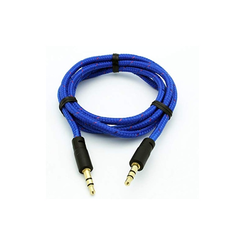 • High quality tangle free braided cloth stereo audio cable. Approximately 3'4" (1 meter) long. Color: blue.