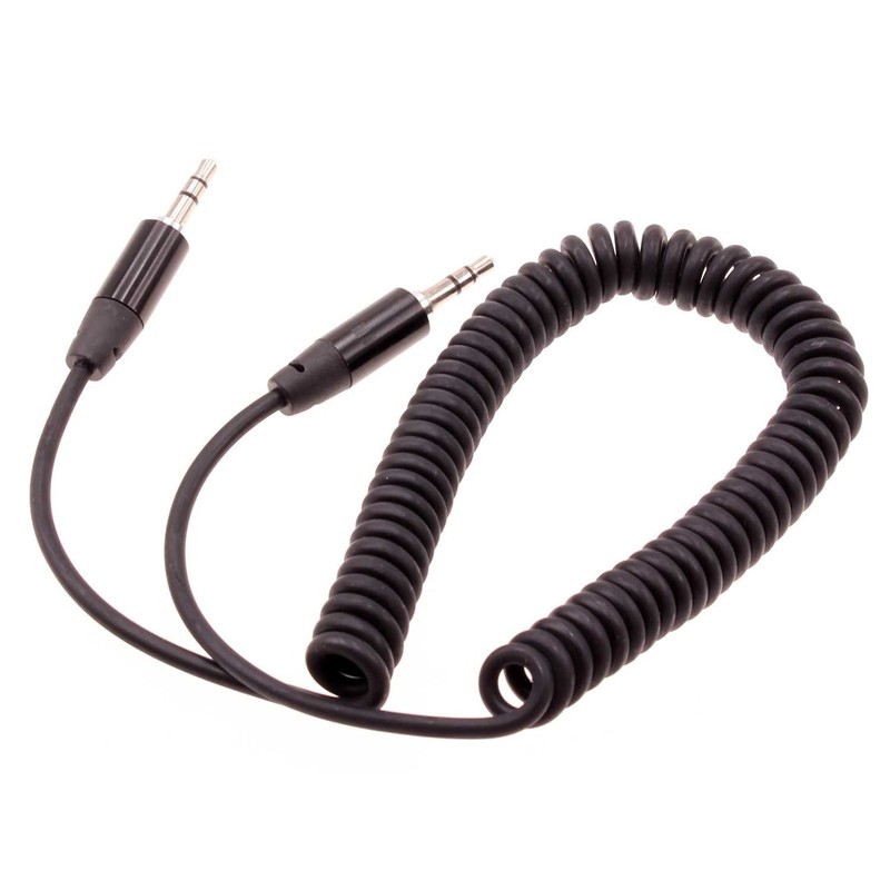 - Space saving coiled cable with less tangle extends for more convenience. Male to male 3.5mm auxiliary cable.