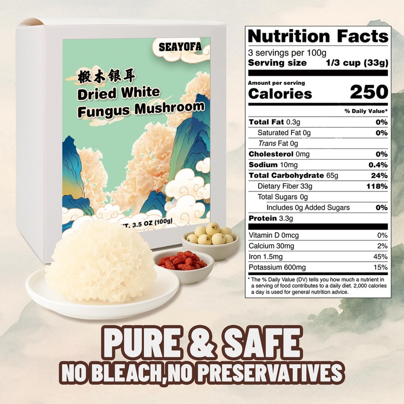- Natural Vegan Mushroom: 100% Naturally grown on hardwood logs—not in labs—this dried snow fungus is plant-based and clean. It contains no additives or preservatives, making it a smart choice for vegan, gluten-free, or whole food diets.