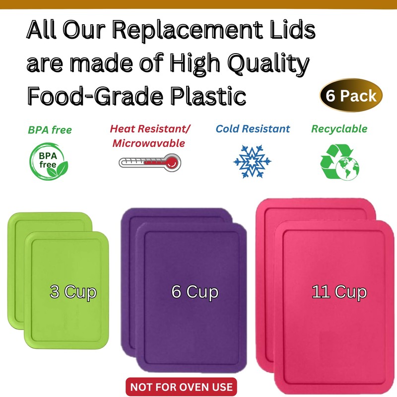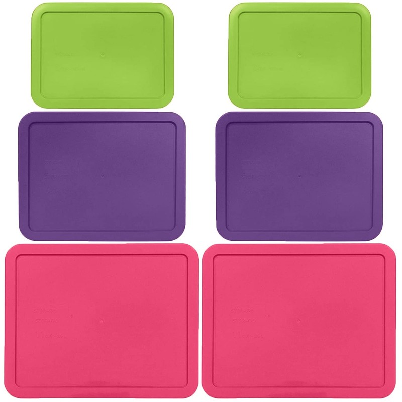 3, 6, 11 Cup Rectangle Replacement Lids/Covers for Pyrex, Anchor Hocking & KlareWare Storage Bowls *Lids Only -Glass Container Not Included*, 6 Pack *2 of Each Size* Spring Green, Purple, Pink