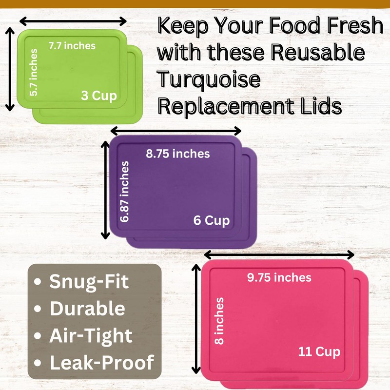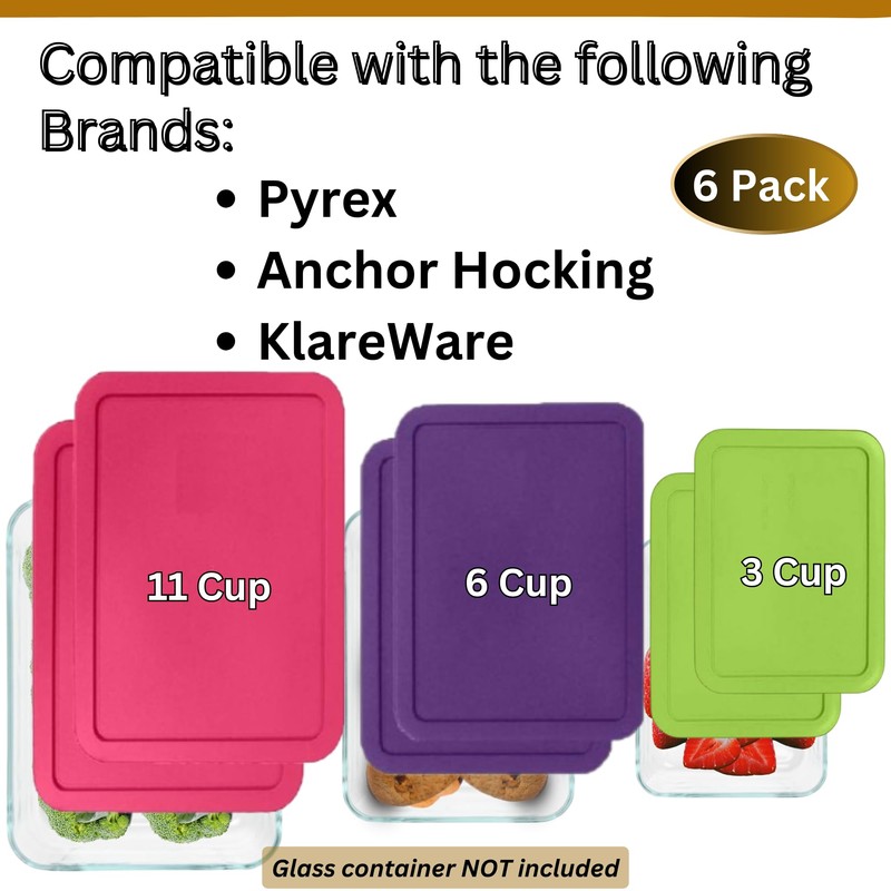 - VALUE PACK BUNDLE INCLUDES - 6 Pack of 3 Cup/750 mL, 6 Cup/1.5 L & 11 Cup/2.6 L Rectangular lids (2 of Each Size), Spring Green, Purple, Pink (Lids Only - *Glass Containers Not Included*)