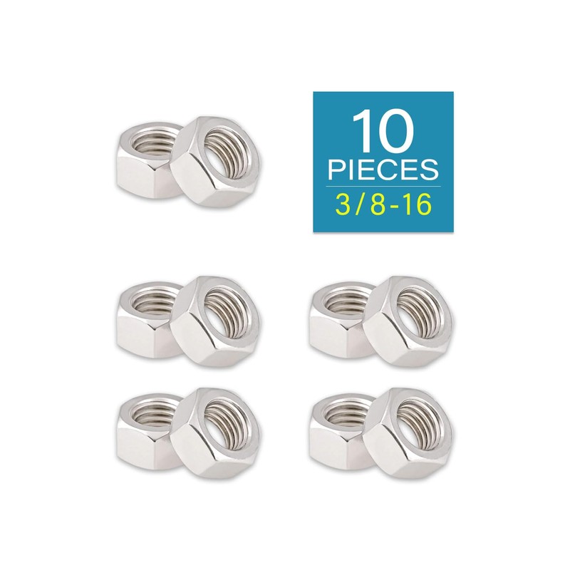 3/8-16 Hex Nuts - IMScrews Premium 304 Stainless Steel Hex Nuts - Versatile Fasteners for Household and Professional Projects Pack of 10