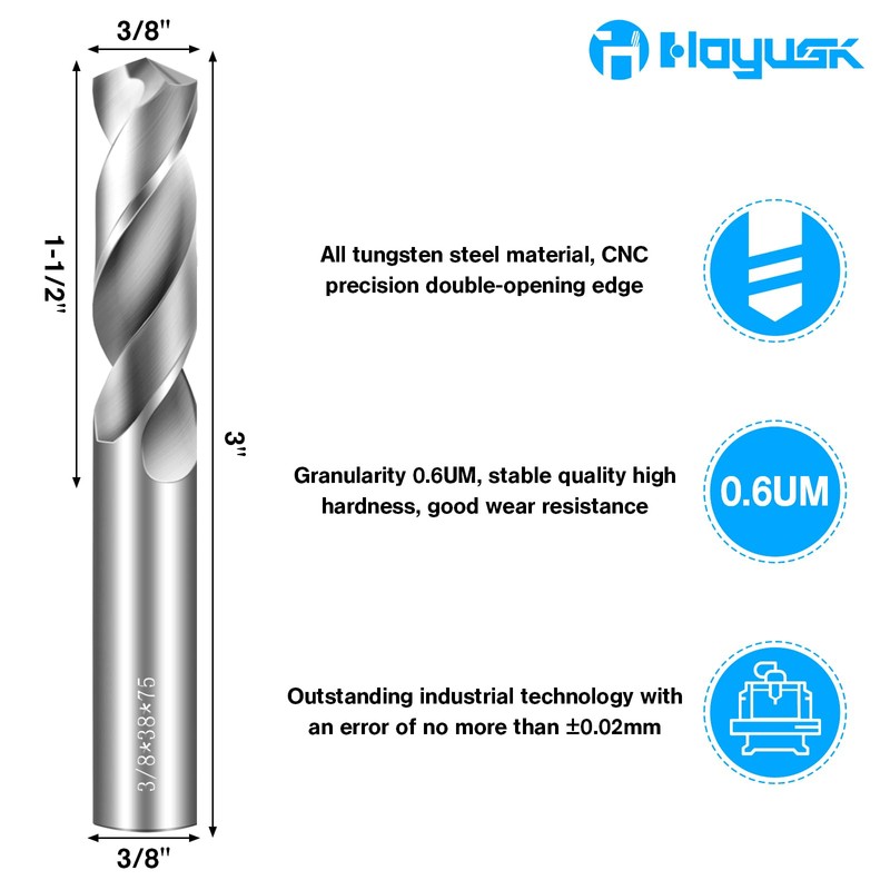 - Tungsten Steel Material: Crafted from 0.6um micro-particle cemented carbide, HOYUSK’s carbide drill bits provide unmatched wear resistance and strength. As an exclusive drill bit for high hardness and high-speed cutting applications, it significantly improves work efficiency. The metal drill bits for steel are engineered to handle tough materials with ease, ensuring long-lasting performance.