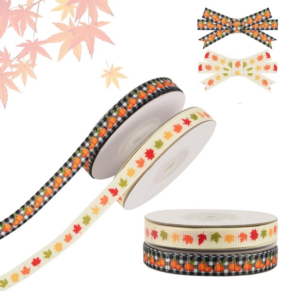- Fall & Thanksgiving Design: Our fall ribbons contains 2rolls ribbons,featuring with pumpkin, maple leaves.Vibrant colors and rich designs,great for accenting your gifts and fall decor.