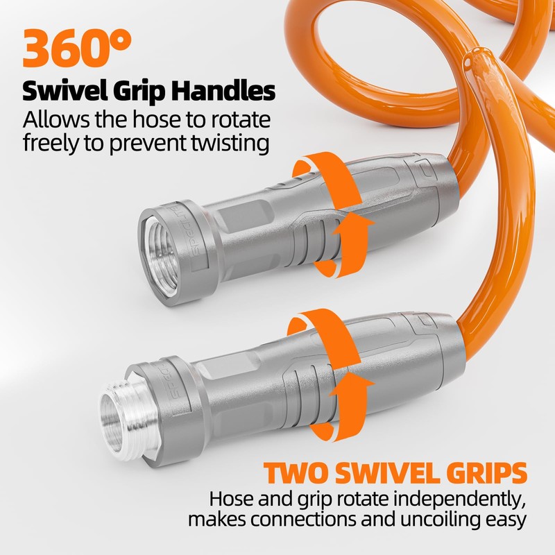 - 360 ° Rotatable Handle: SPECILITE new innovation, set up the rotatable handle on the coil hose to reinforce the connection port, making it easy to grip and connect, without worrying about the interface easily breaking or leaking
