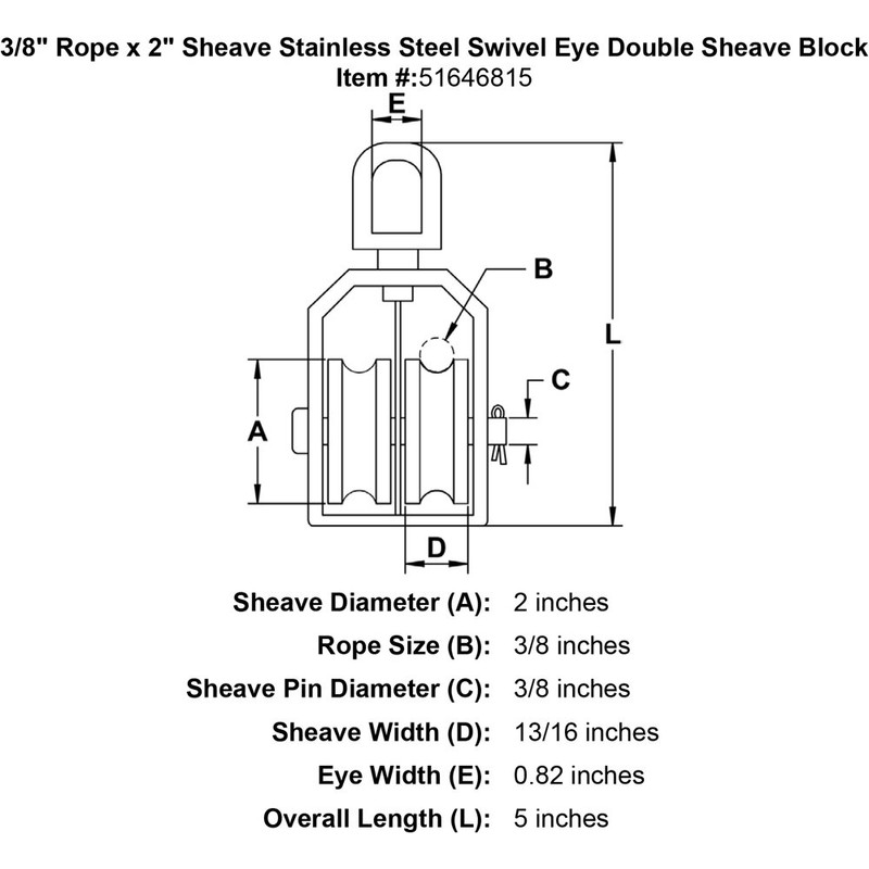 3/8" Rope x 2" Sheave Stainless Steel Double Sheave Swivel Eye Block