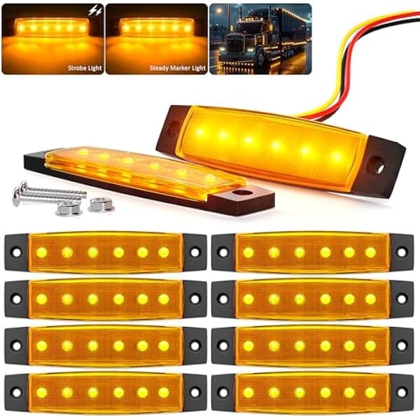 3.8" Strobe+Steady Marker Lights Strip Dual Function Amber Trailer LED Side Clearance Tail Griller Flash Lights 12V Turn Signal Warning Waterproof Light for Trailer Truck Van RV ATV Bus, 10Pcs