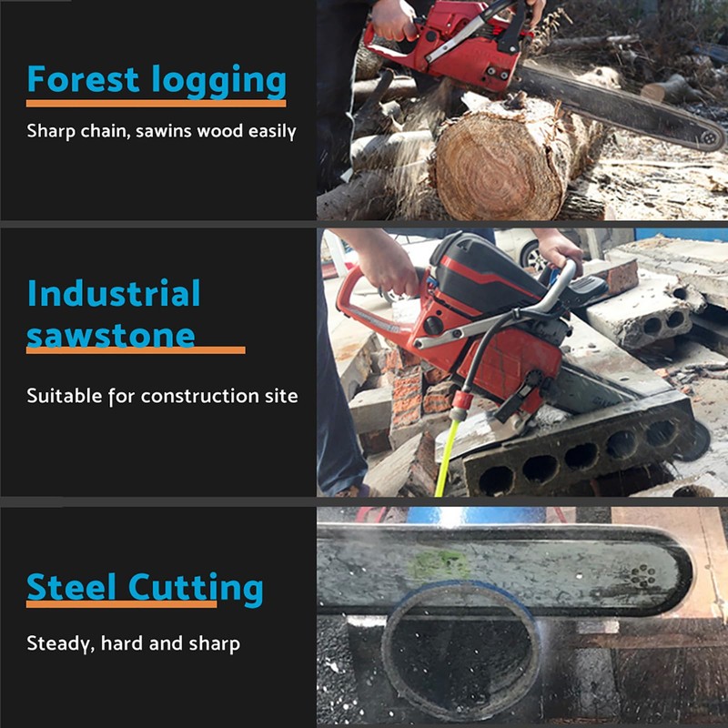 • Forest logging, construction sites, cutting of cast iron steel pipes.
