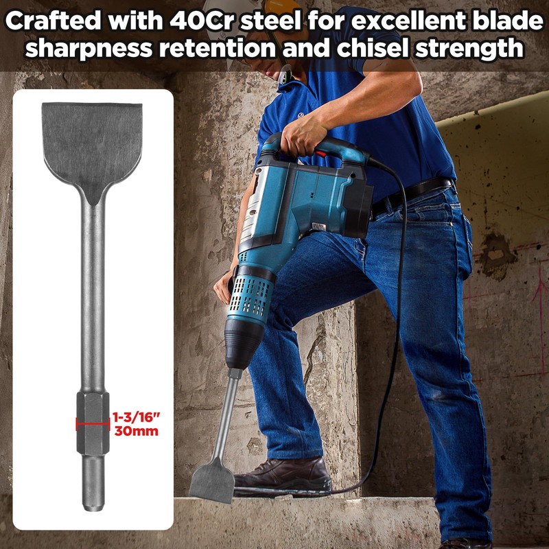 - 【HEX HEAD】: electric/gas powered demolition hammer Tile & Thinset Scaling Chisel, fitting a hammer's chisel locking system for a 30mm hex shank.