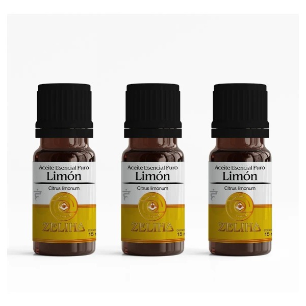 Este pack de 3 frascos de aceite esencial de limón (15 ml c/u) contiene una fórmula concentrada con 68% de D-limonene, uno de los compuestos naturales más potentes con propiedades antioxidantes, energizantes y purificadoras.