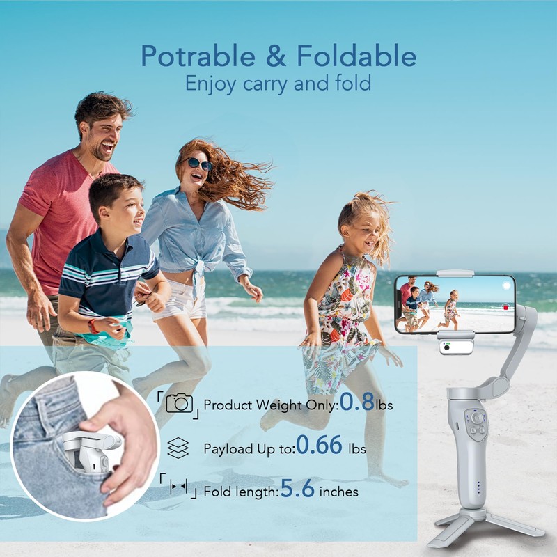 • 【Portable and Foldable】Bring professional-grade stability wherever your adventures take you with the compact and convenient L7 Pro estabilizador de celular profesional. Fold it up and pack it in your bag, ready for hikes, travels, and spontaneous photo-ops. The Stabilizer for iPhone & Android weighs only 0.78 lbs and sizes only 5.98 inches. With its foldable design, our iphone stabilizer can be carried in your pocket or bag wherever you go. The ergonomic handle provides a pleasant feel and structure, so you can enjoy video content all day long.