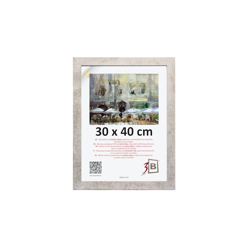 3-B ISEO Picture Frame, Grey (Concrete Structure), 30 x 40 cm, Wooden Frame, Photo Frame, Document Frame with Acrylic Glass