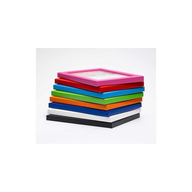 - Pine wood, acrylic glass, MDF backing board with hanger for portrait and landscape orientation. A paint finish that completely covers the wood texture gives the frame a modern and contrasting look