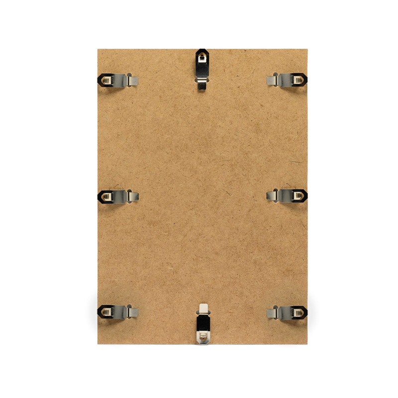 - MDF back with several metallic clips.