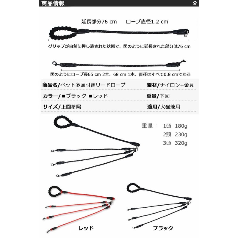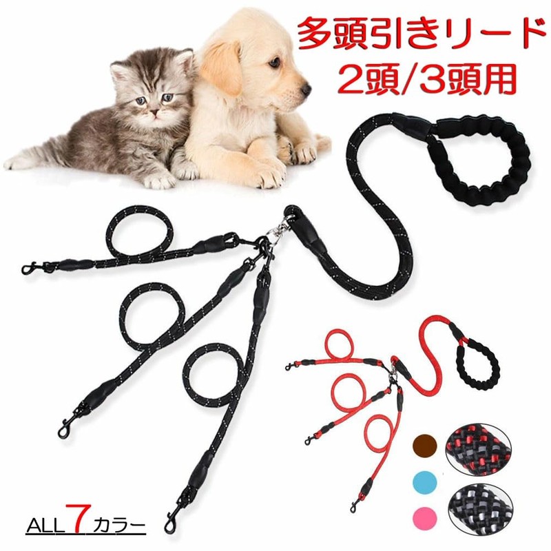 犬用多頭引きリード リード 3頭引き 丸ひも二頭引き ダブルリード ペットリード 犬猫兼用 散歩小型 中型犬 多頭飼い 絡まない ペット リード付き ペット用品 おしゃれ 可愛い かわいい お出掛け 散歩グッズお出かけ人気 (ブラック+レッド)