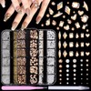 - Package: Box-1 are half round pearls nail charms, including white and beige nail charms. Box-2 are nail rhinestones set, including multi shapes champagne nail rhinestones. Box-3 are nail beads set: including gold and silver metal caviar nails beads